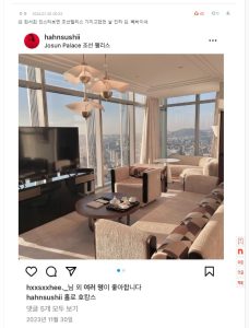 Salah seorang netizen kemudian mengunggah postingan Han Seo Hee saat dia berada di Josun Palace yang merupakan sebuah hotel. Menurut netizen tersebut, tanggal unggahan itu sama dengan tanggal chat yang diduga antara Ahn Hyo Seop dan Han Seo Hee.